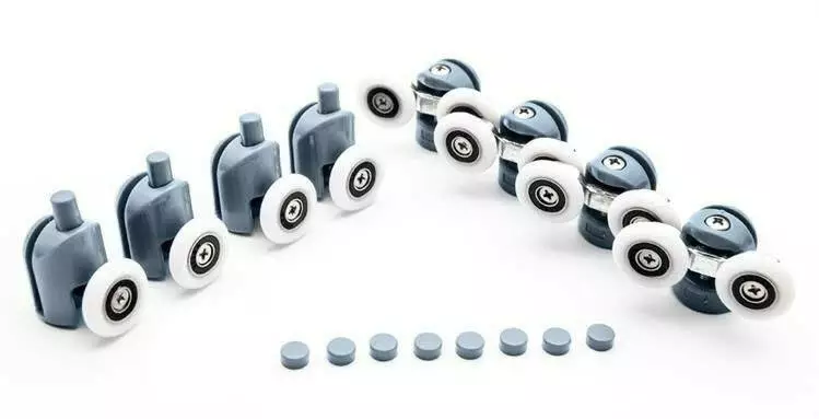 УНІВЕРСАЛЬНІСТЬ - ролики виготовлені з пластику, нейлону і корозійностійкої сталі. Вони підходять до всіх душових кабін, в яких використовується даний тип шарикопідшипників. Ролики разом із колесами адаптуються до форми бігунка.