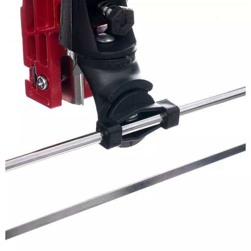 - Точилка дозволяє скоротити час заточування ланцюга і забезпечує збереження правильних кутів ріжучих зубів, від яких залежить ефективність різання деревини.