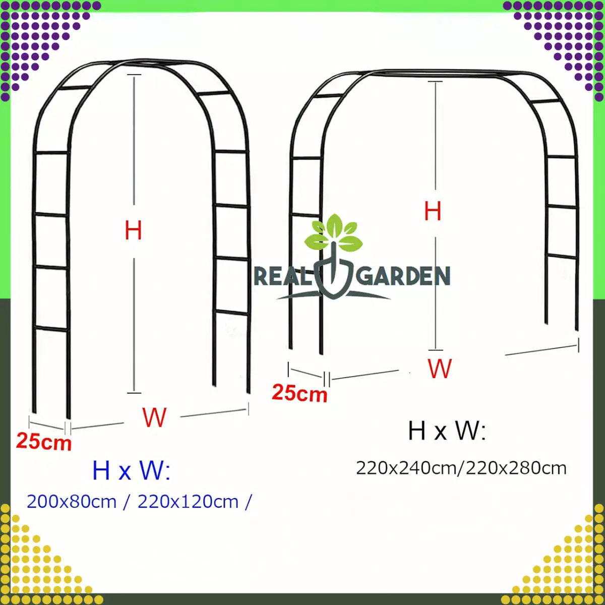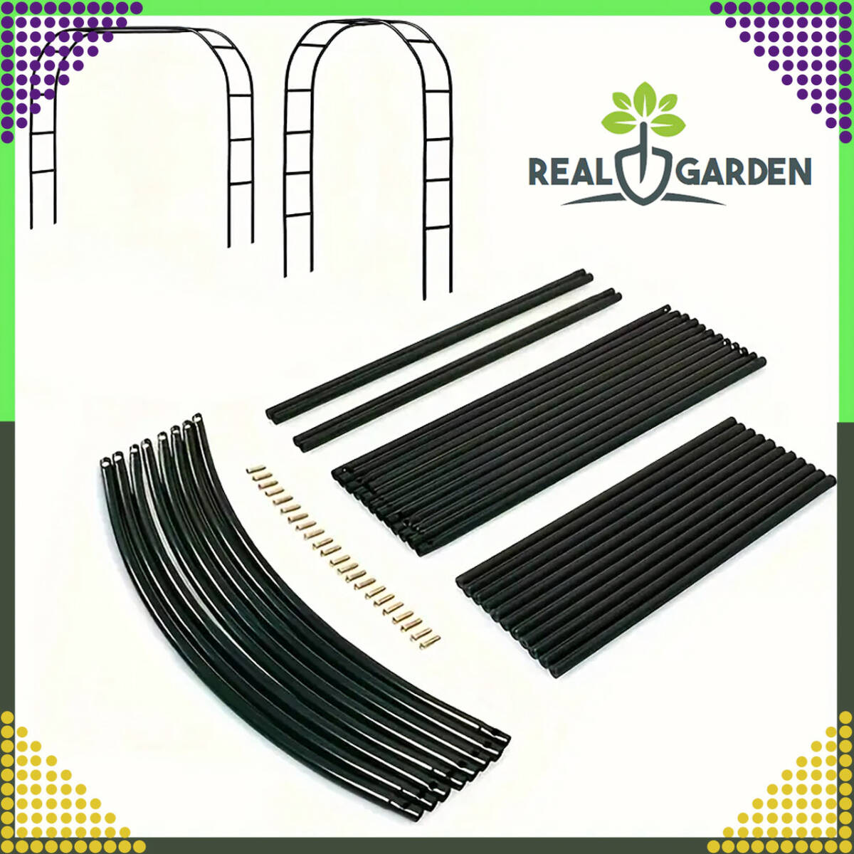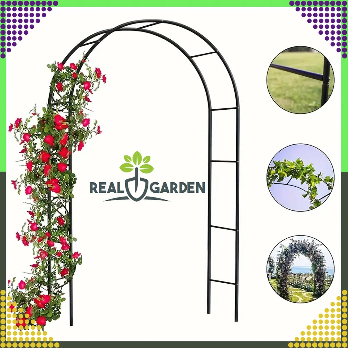 - Елегантний дизайн: класичний чорний колір і дугоподібна форма додають витонченості саду.