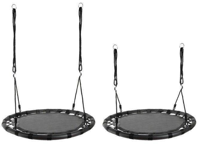 - Велике сидіння - гойдалки мають широке кругле сидіння із залізного каркасу, використаний матеріал поліестер + нейлон + EVA. Вантажність до 100 кг можлива завдяки використанню плетених канатів товщиною 10 мм. Це гарантує безпеку і дозволяє навіть дорослим переживати хвилини радості. Це ідеальне рішення для великої родини. Його розмір і форма дозволяють розмістити кілька людей