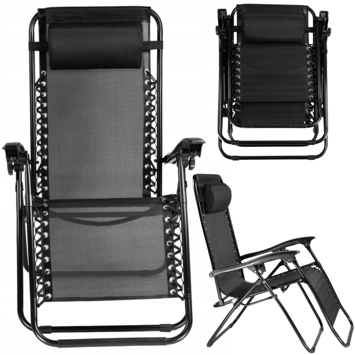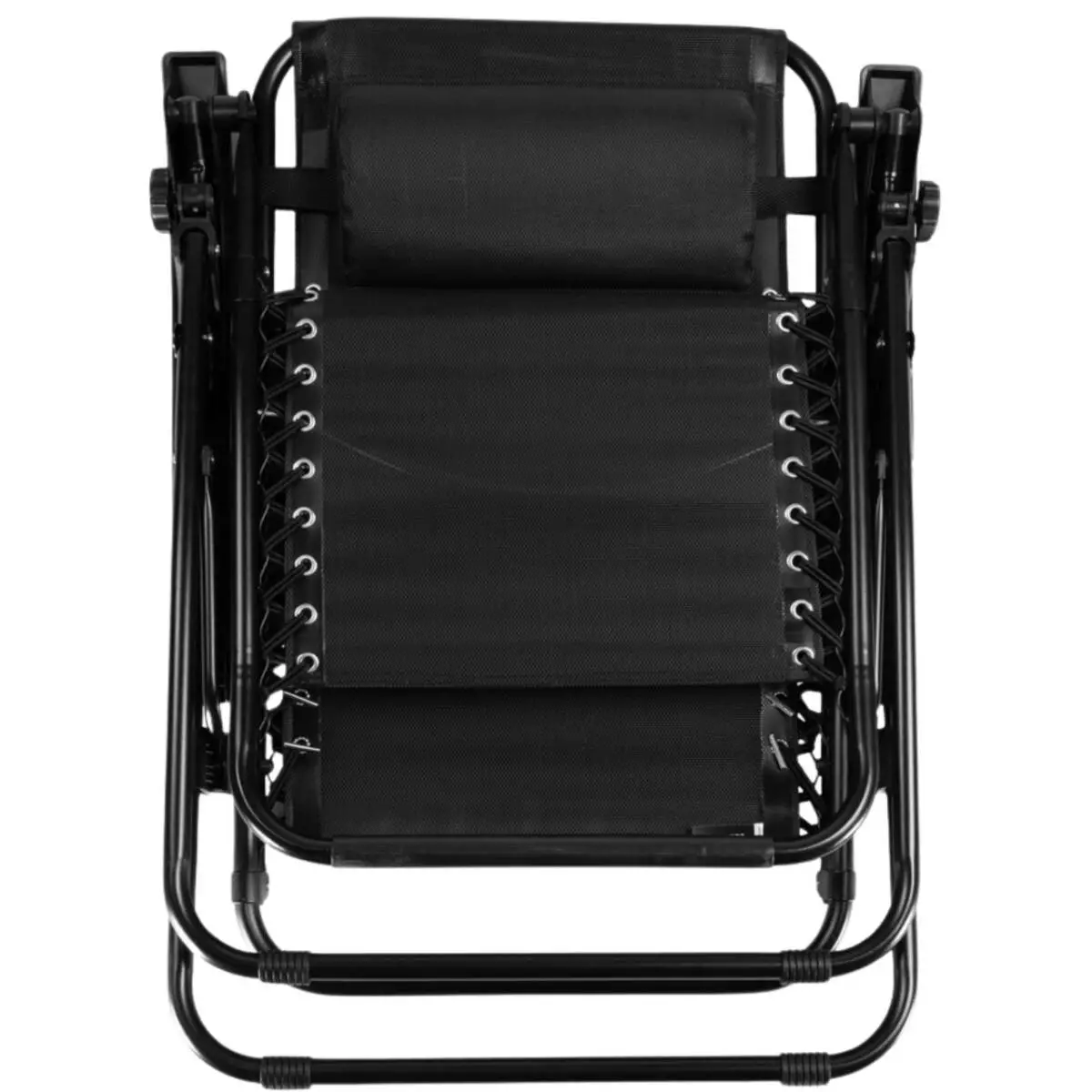 Садовий і пляжний шезлонг, розкладне крісло з підголівником, чорний