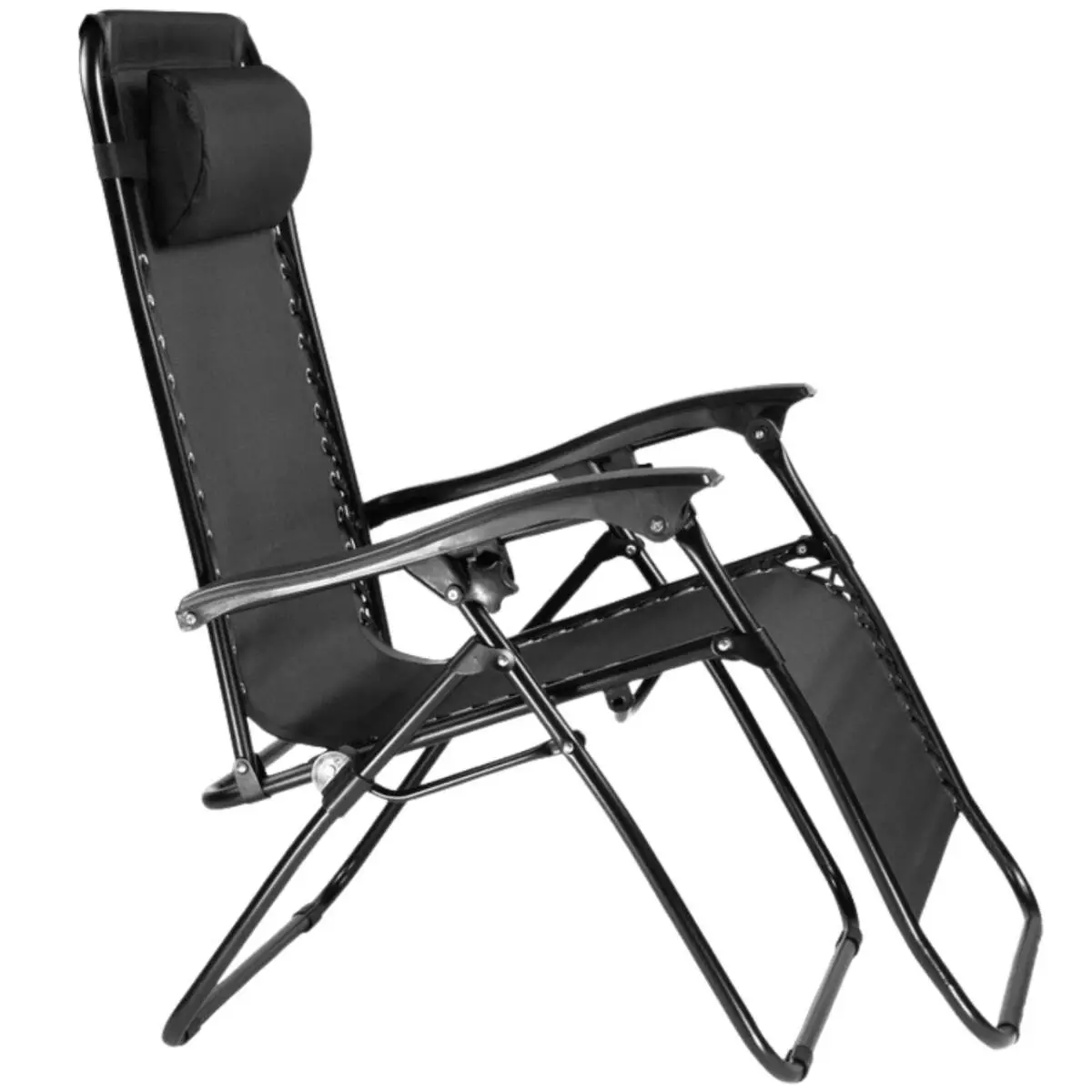 Садовий і пляжний шезлонг, розкладне крісло з підголівником, чорне