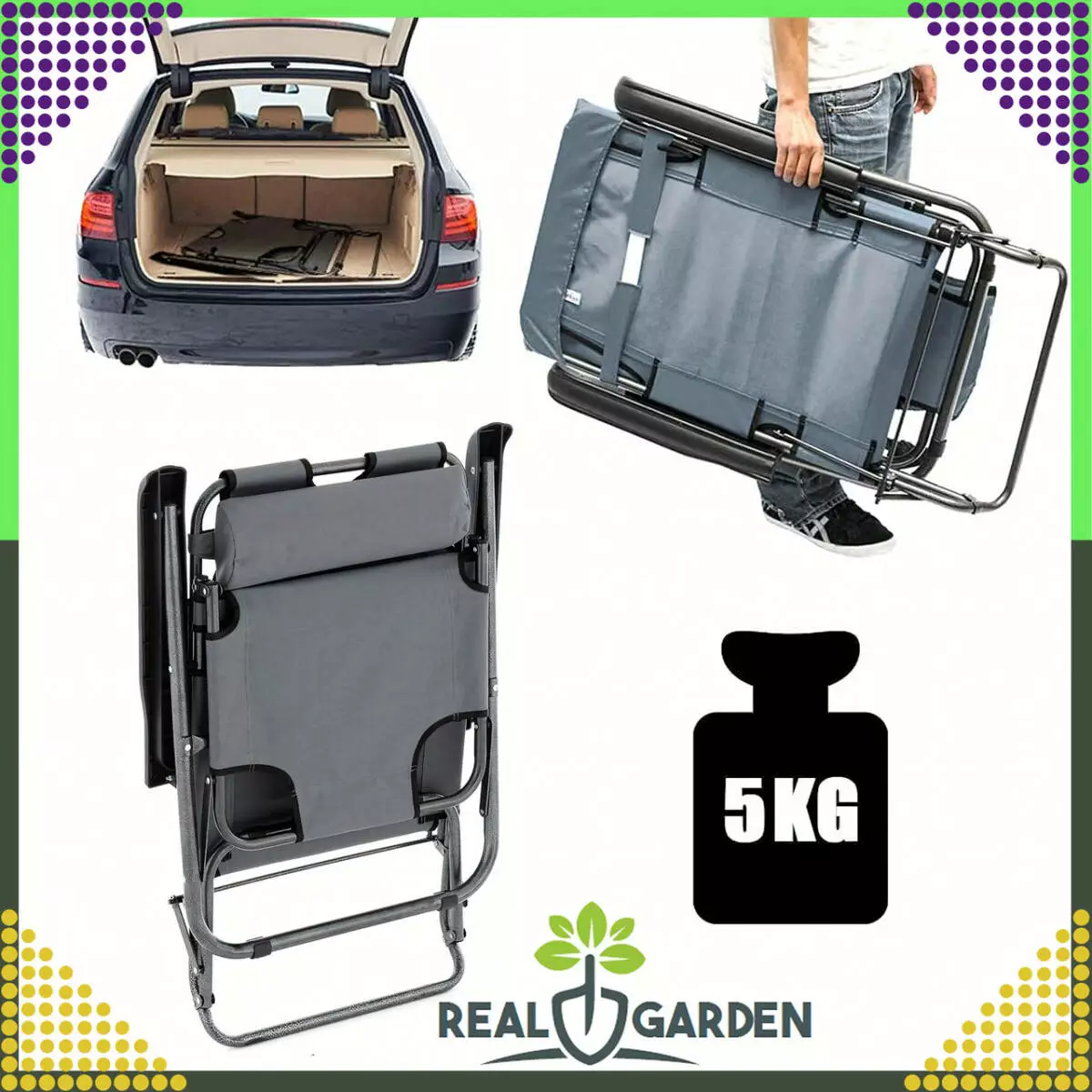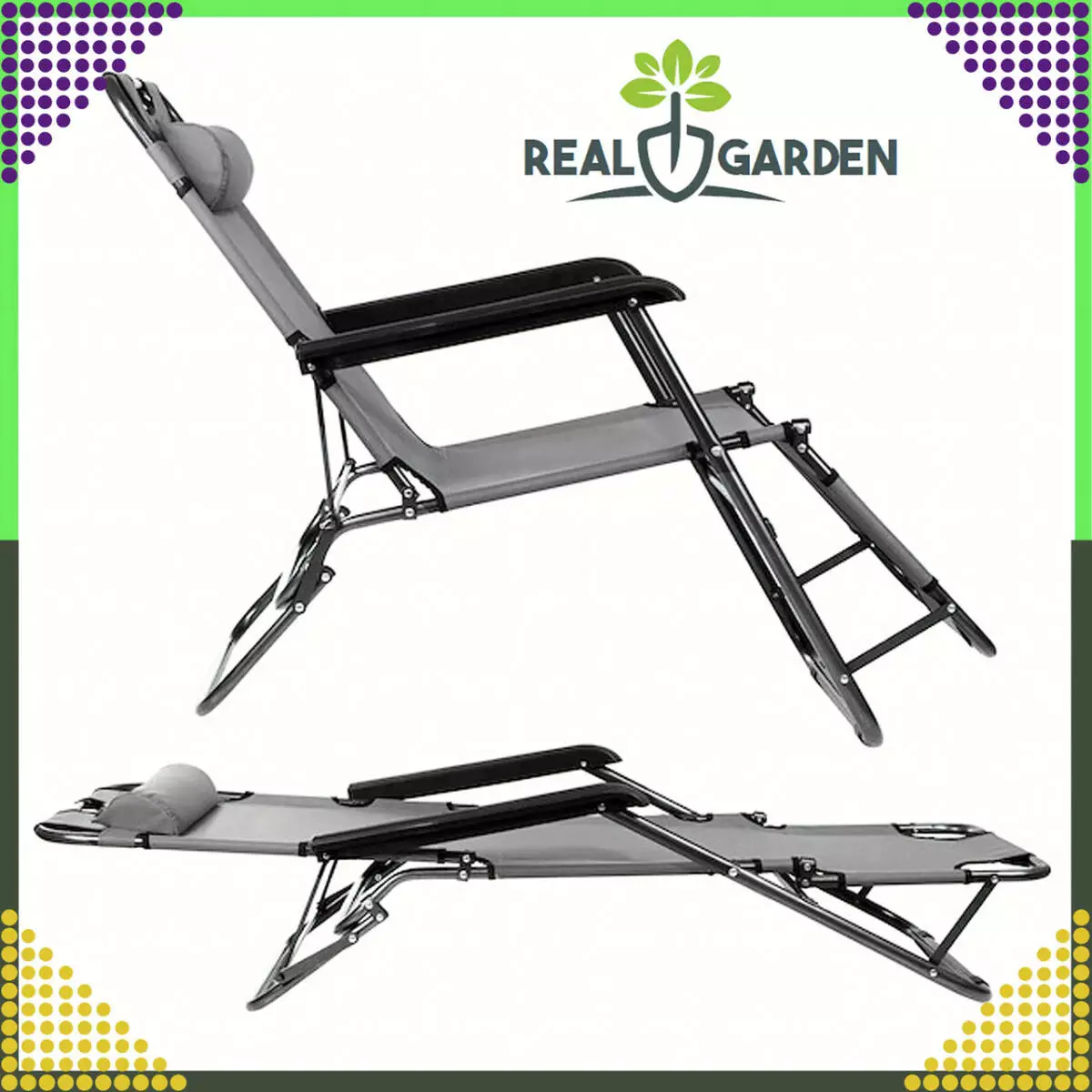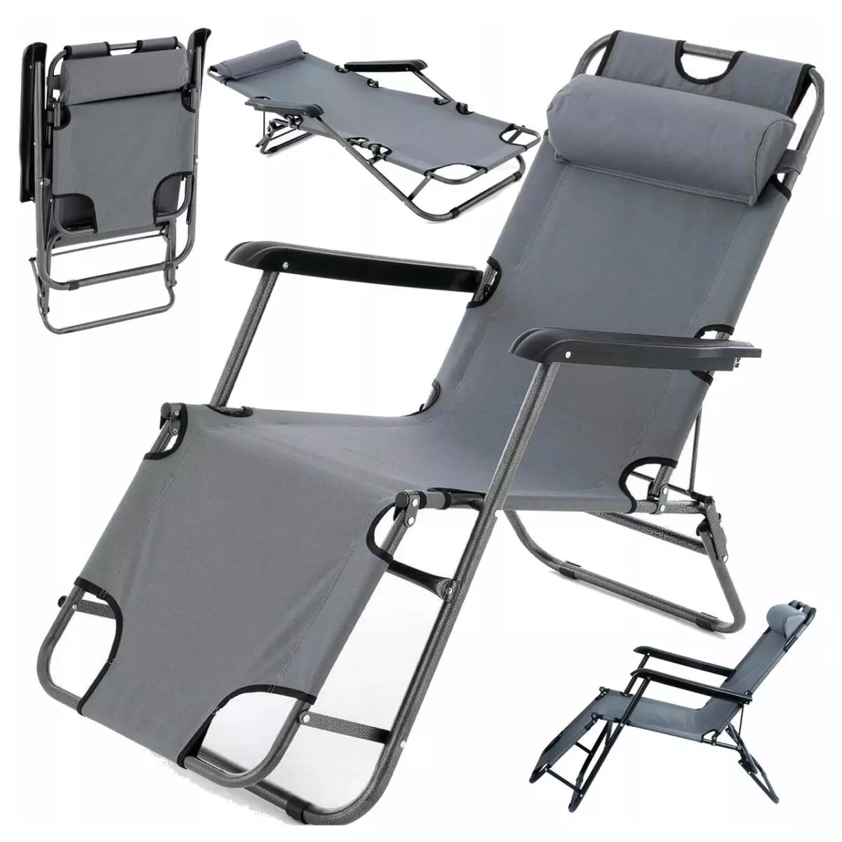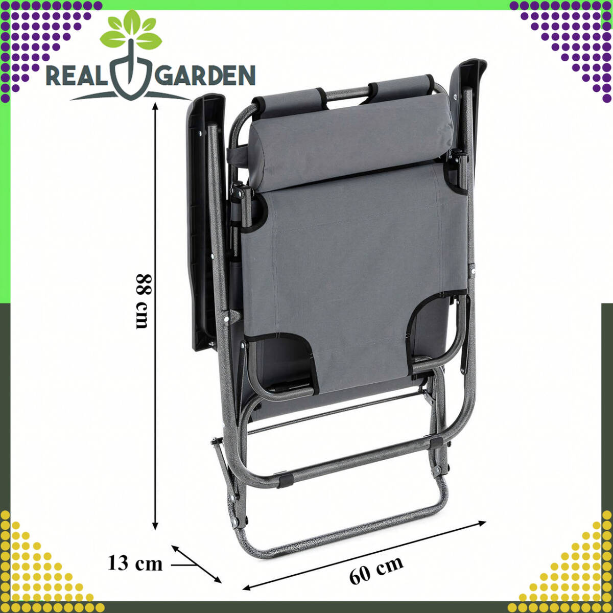 Садовий і пляжний шезлонг, розкладне крісло з підголівником до 130кг, Сірий RC-K-872