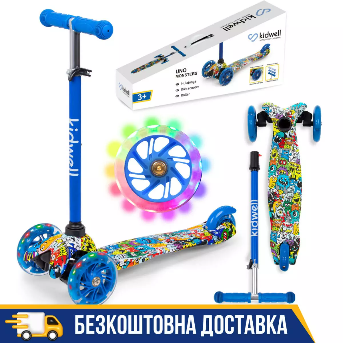Самокат дитячий триколісний Kidwell UNO MONSTERS HUBAUNO01A5 Польша