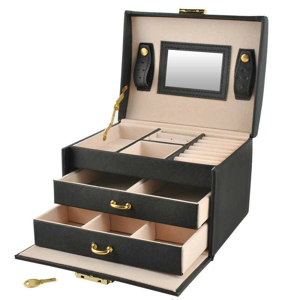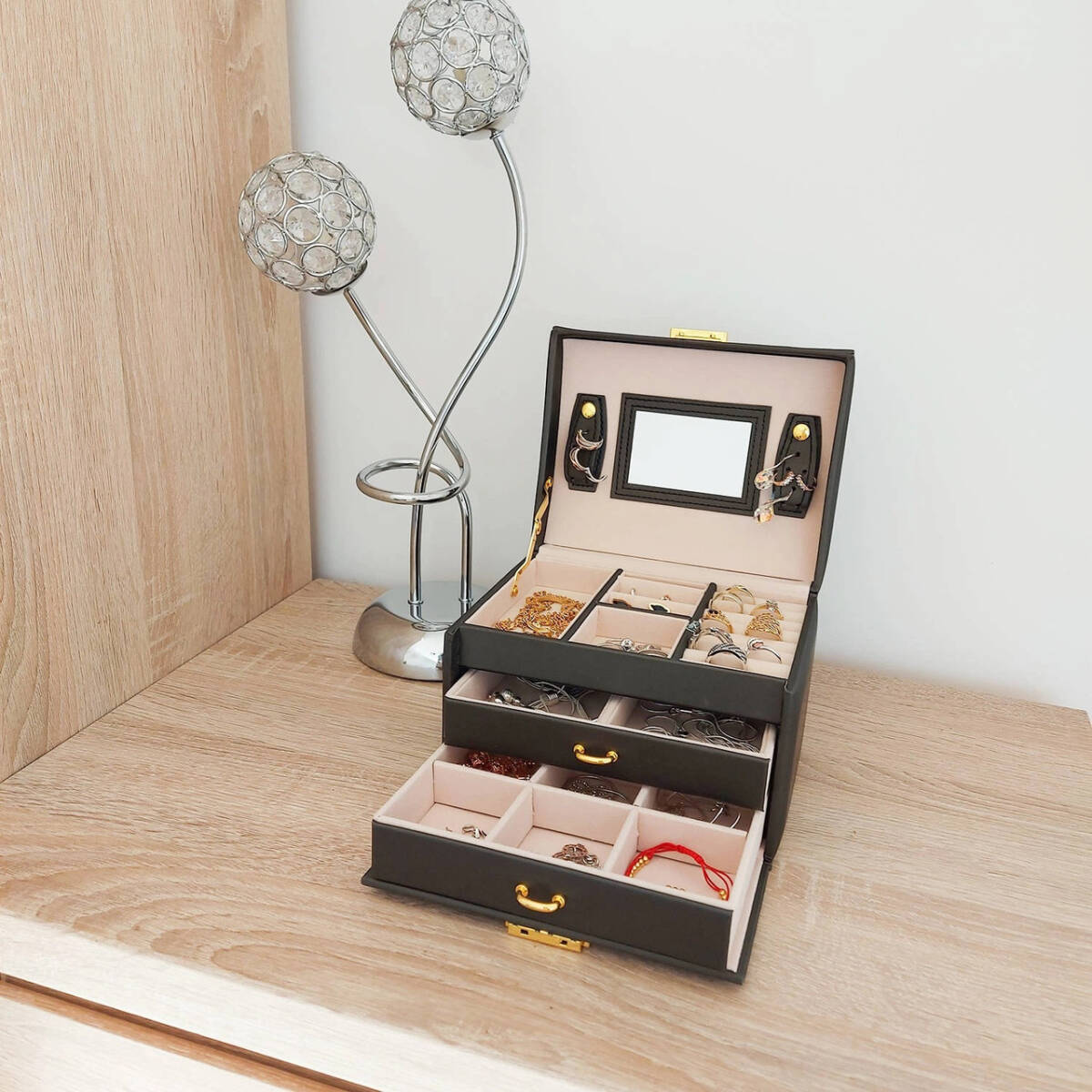 Сатинова скринька для прикрас BEAUTYLUSHH, чорна, з дзеркалом і ключем