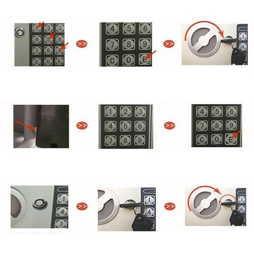 предметів.ПОДВІЙНА БЕЗПЕКА – електронне шифрування та аварійне відкриття за допомогою традиційного замку з ключем гарантують високий захист від несанкціонованого доступу. Замок можна запрограмувати кілька разів за допомогою 3-8-значного коду доступу. Після триразового неправильного введення коду відбувається 30-секундне блокування, яке сигналізується світловим та звуковим сигналом. Якщо батареї розряджені, сейф також сигналізує про це світлодіодним підсвічуванням.