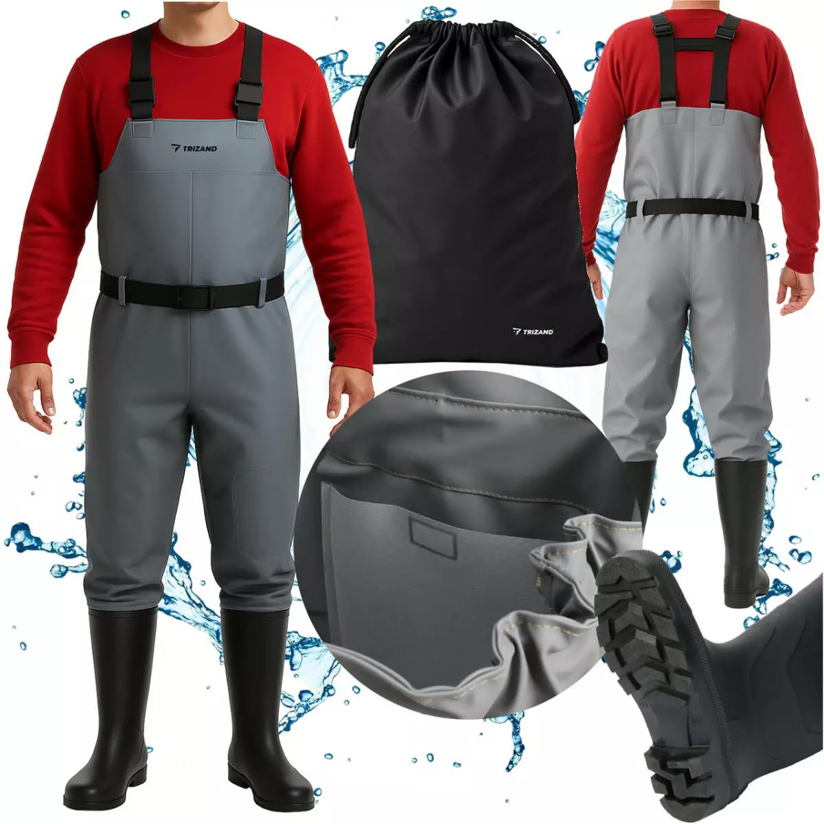 Вейдерси TRIZAND з калошами, сірі, розмір 41 – захист, комфорт і повна свобода для рибалки