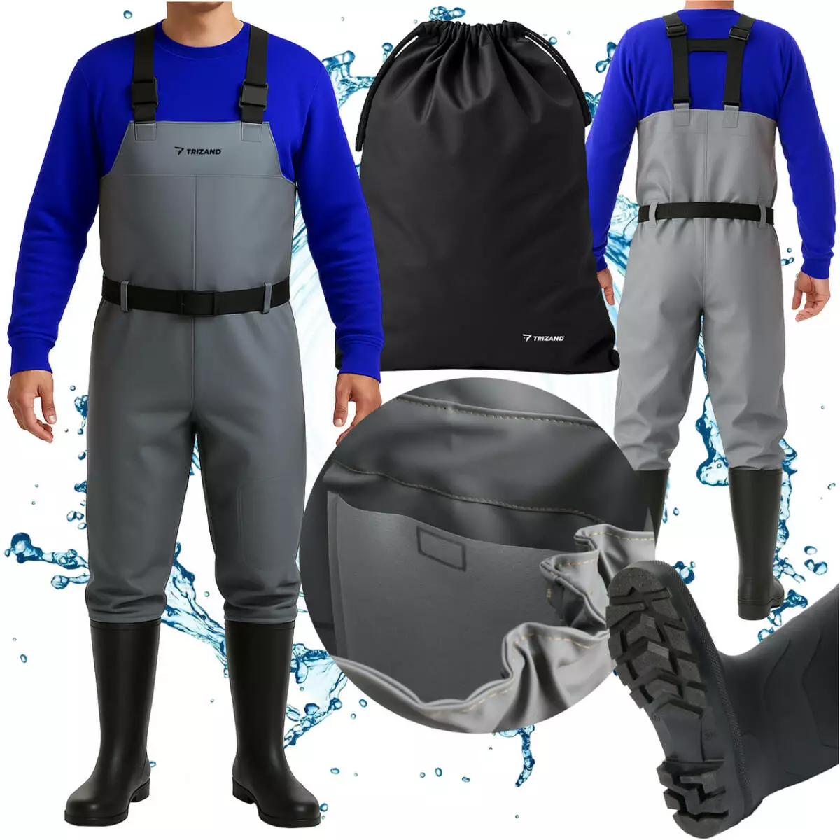 Вейдерси TRIZAND з калошами, сірі, розмір 42 – захист, комфорт і повна свобода для рибалки