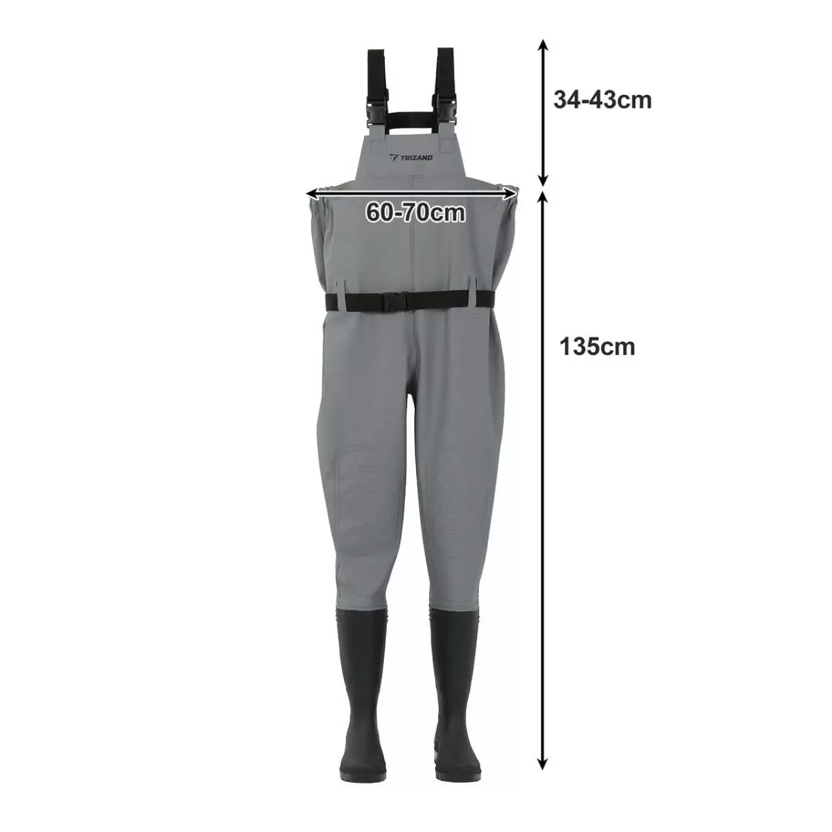 Вейдерси TRIZAND з калошами, сірі, розмір 44 – захист, комфорт і повна свобода для рибалки
