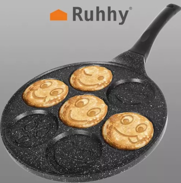 Ваші діти теж перебірливі у їжі? Ця сковорода надихне навіть найвибагливішого їдця. Усміхнений омлет або млинець додасть радості їжі і спонукає вас до їжі. Прикрашати + їсти - це найбільша радість дитини. Посмішки з фруктів, а також розпис очей джемом або шоколадним кремом стануть чудовою розвагою під час трапези.