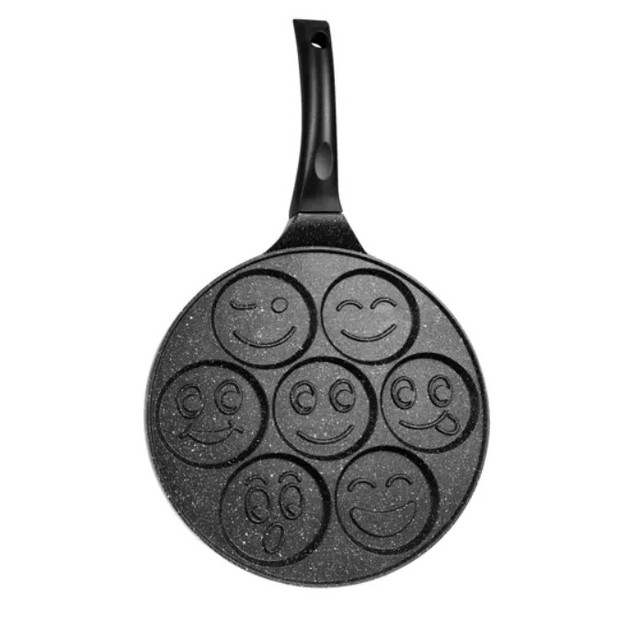 ЦІКАВИЙ ЕМОЦІЙНИЙ ДИЗАЙН - візерунки на сковороді різні, жоден малюнок не повторюється. Смайли спонукають не лише дітей їсти, а й дорослих прикрашати. Так ви покращите настрій собі та своїм близьким під час подачі їжі.