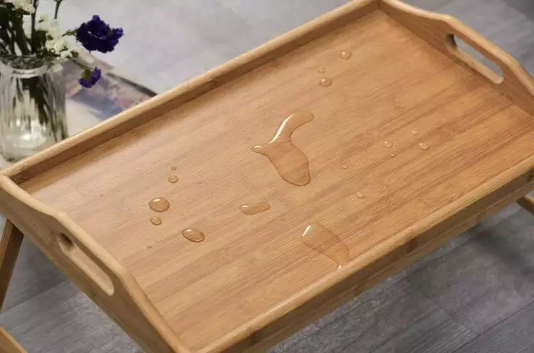 - Стабільна конструкція. Завдяки міцним ніжкам і бамбуковій поверхні, столик не хитається та надійно тримається на поверхні.