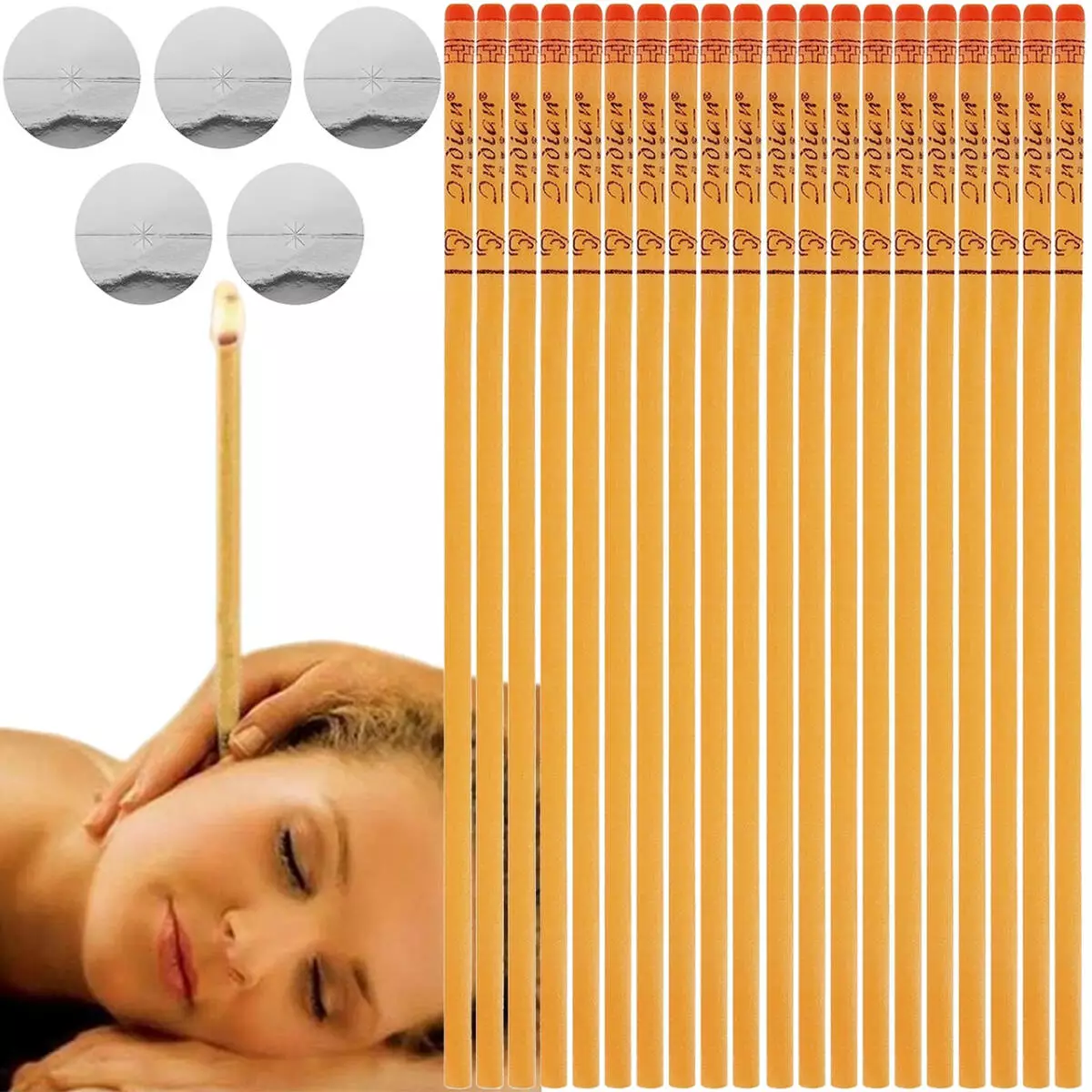У набір входить набір з 20 свічок з фільтром, який ефективно захищає вухо від небажаних наслідків горіння свічки. Фільтр запобігає потраплянню сірки у вухо. Лікування свічками дозволяє повністю розслабити весь організм. Свічки мають розслаблюючу та ароматерапевтичну дію. Свічки виготовлені з 100% натурального бджолиного воску в поєднанні з ефірними маслами. У комплект входить підставка, яка запобігає падінню сірки, яка може обпекти вухо.