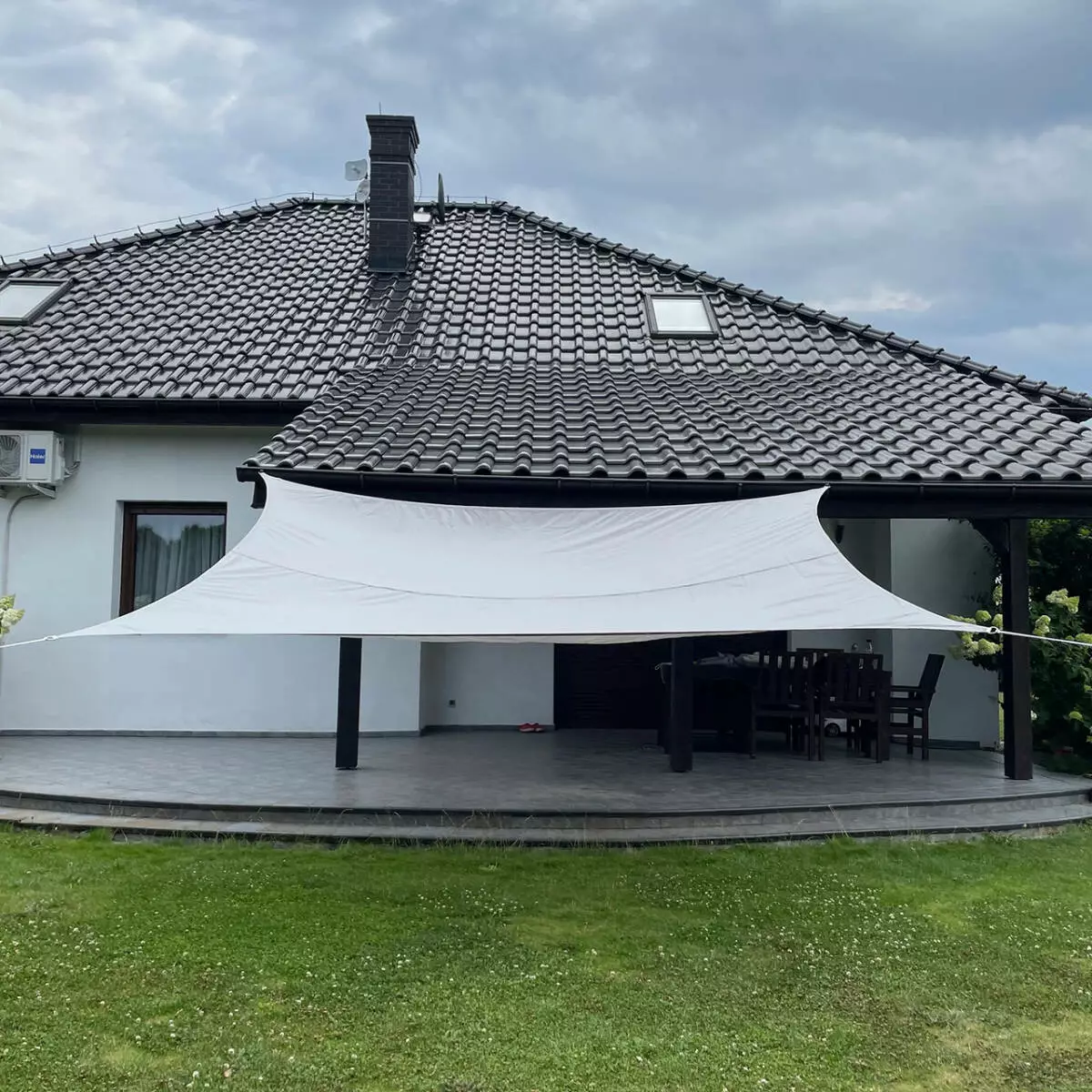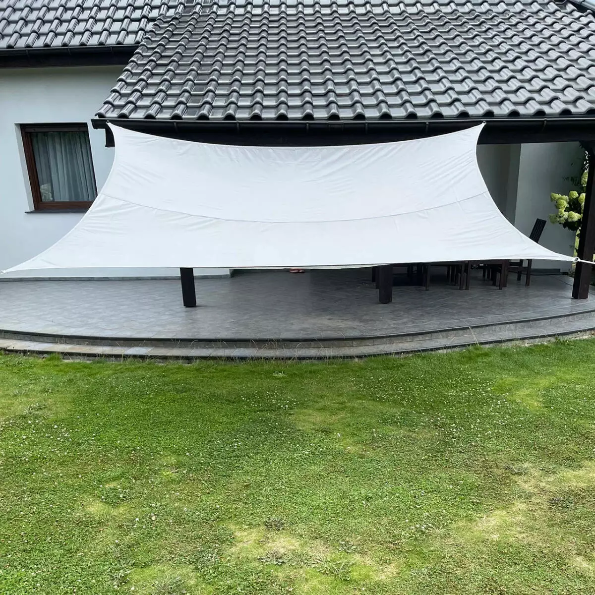 БАГАТО ВАРІАНТІВ ПОЗИЦІОНУВАННЯ - ви можете встановити вітрило під будь-яким кутом, залежно від ваших переваг і кількості сонячного світла. У цьому вам допоможуть спеціальні троси та монтажні кільця, розташовані на його кутках.