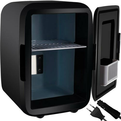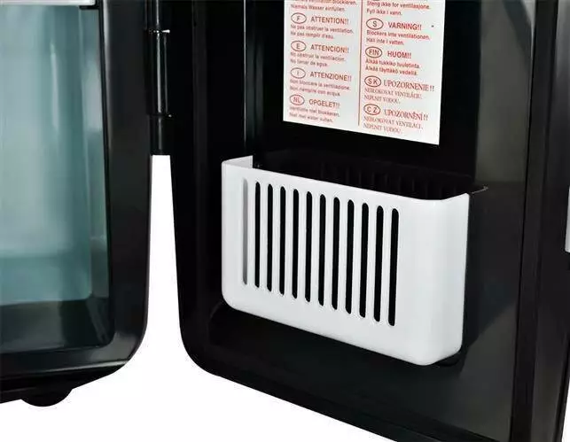 У ньому можна розмістити банки і пляшки висотою до 19 см. Холодильник щільно закривається і захищений від випадкового відкриття ручкою-засувкою. Всередині є висувна полиця і кишеня на дверцятах. Це дає змогу з легкістю зберігати різні види продуктів. Холодильник можна живити від мережі за допомогою кабелю або від гнізда автомобільного прикурювача. Обидва шнури живлення входять до комплекту. Живлення традиційним способом означає, що його можна використовувати і в офісі, і в саду, і в інших місцях відповідно до індивідуальних вимог. Однак під час використання холодильника на відкритому повітрі дуже важливо не залишати прилад безпосередньо на вулиці та не піддавати його впливу сонячного світла і вологості. Спеціальна зручна ручка висувається з корпусу і допомагає переміщати холодильник. Прилад також можна використовувати як обігрівач. Перемикання між функціями здійснюється за допомогою перемикача на задній панелі, а активація певного режиму відображається світлодіодом, що світиться.