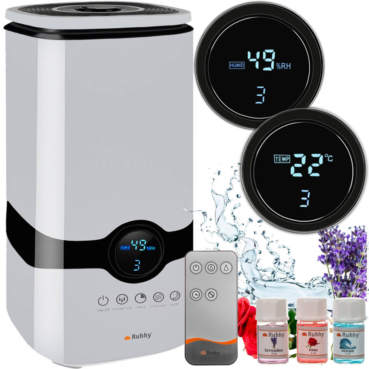 Ультразвуковий зволожувач повітря RUHHY 4 л з іонізацією, таймером і 3 ароматичними олійками