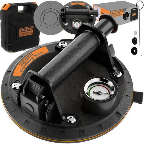 Вакуумна присоска Bigstren 22479 c манометром і насосом вантажопідйомність 200 кг для скла і плитки Кейс |