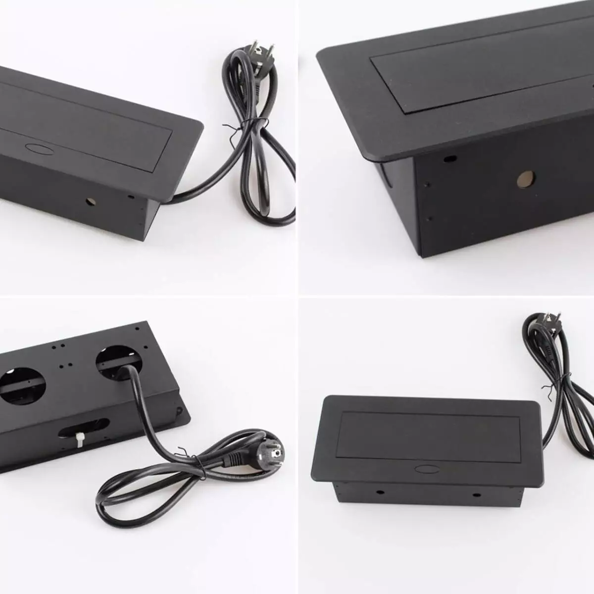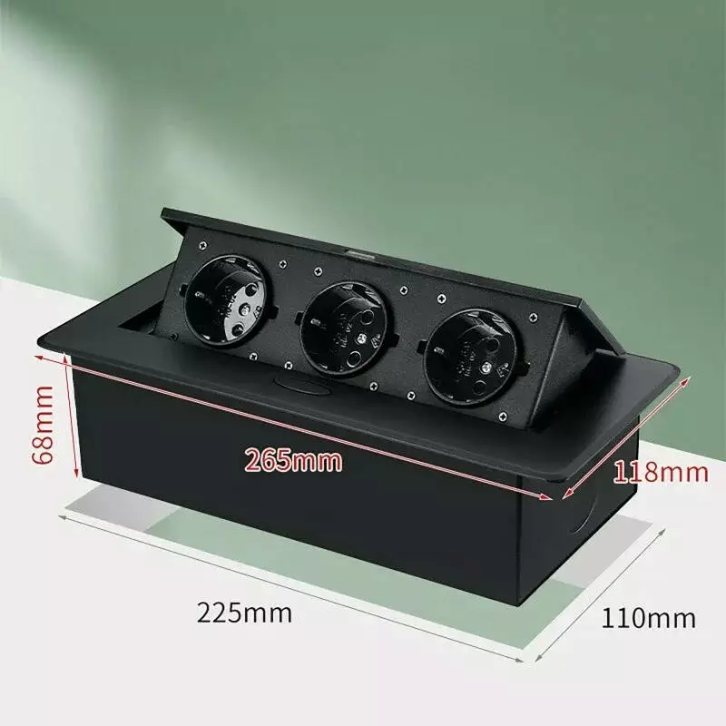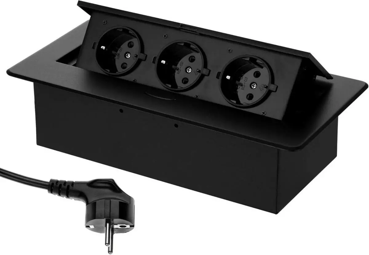 Вбудована потрійна розетка в стільницю - прихована висувна розетка з кабелем 230В Чорна Loft