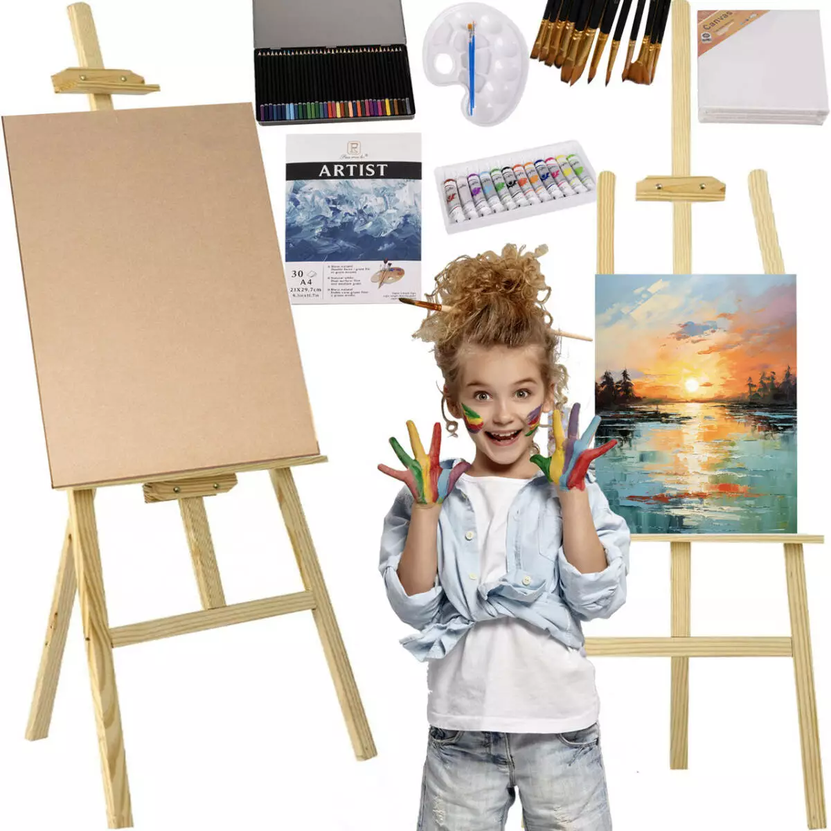 Великий дерев'яний мольберт для малювання 170 см + набір аксесуарів для малювання MAALEO 22639