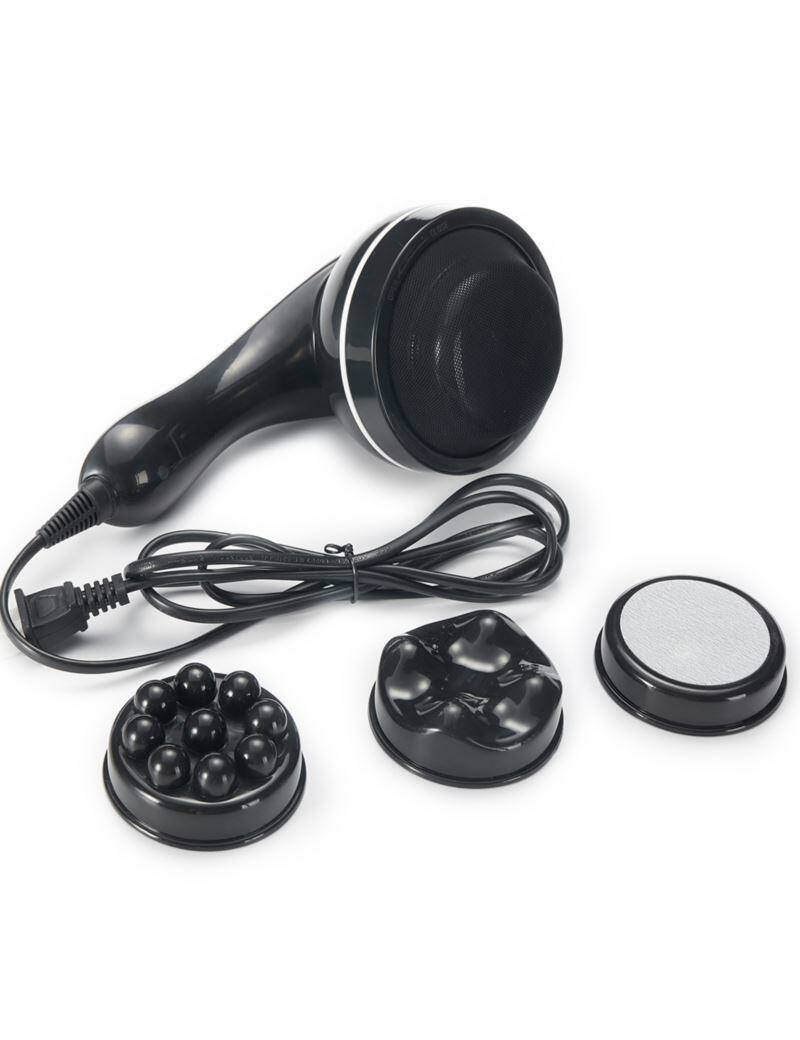 - 4 змінні насадки: для масажу різних частин тіла — живота, стегон, спини, рук і шиї.