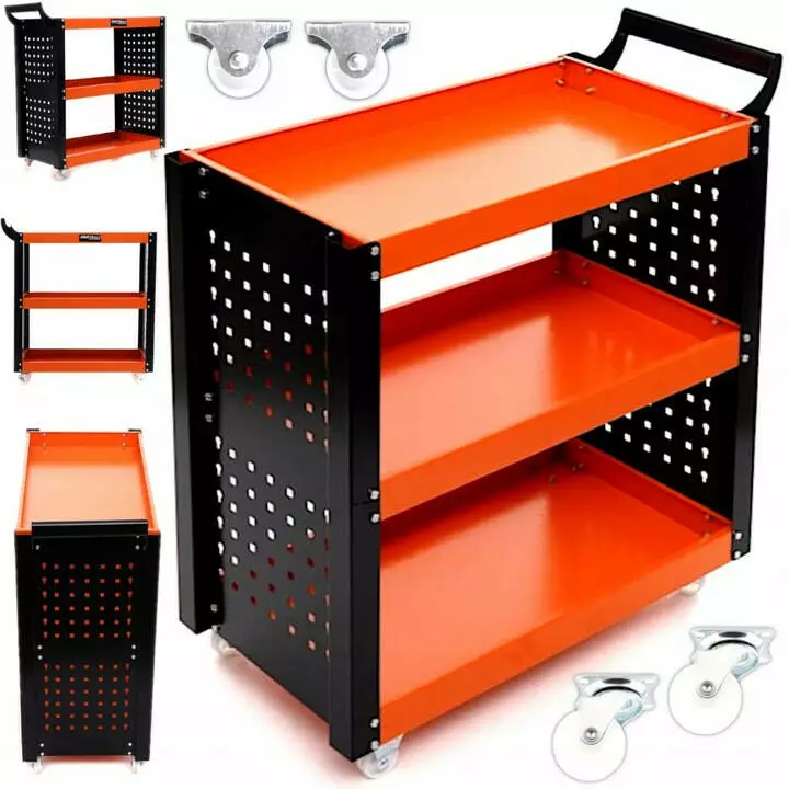 Ця візок для інструментів має досить велику місткість, а також досить міцну і мобільну, що робить її ідеальним вибором для використання в різних умовах і на різних типах поверхонь.