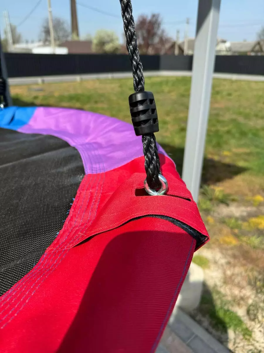 Гойдалки мають регульовану довжину мотузки та оснащені металевими